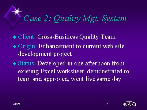 * This project has been almost entirely glitch-free. Brian Hanson has done a nice job on the QMS website, and this database came up out of an almost casual coincidence.
